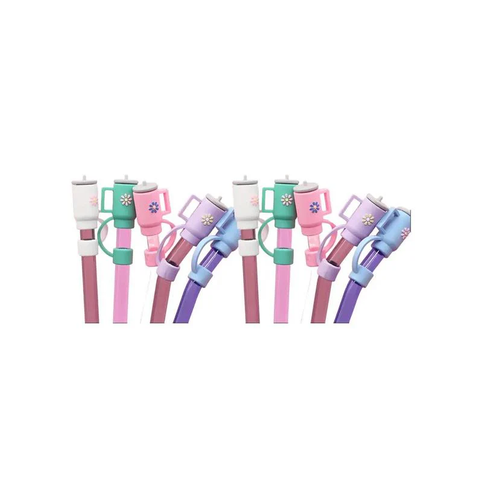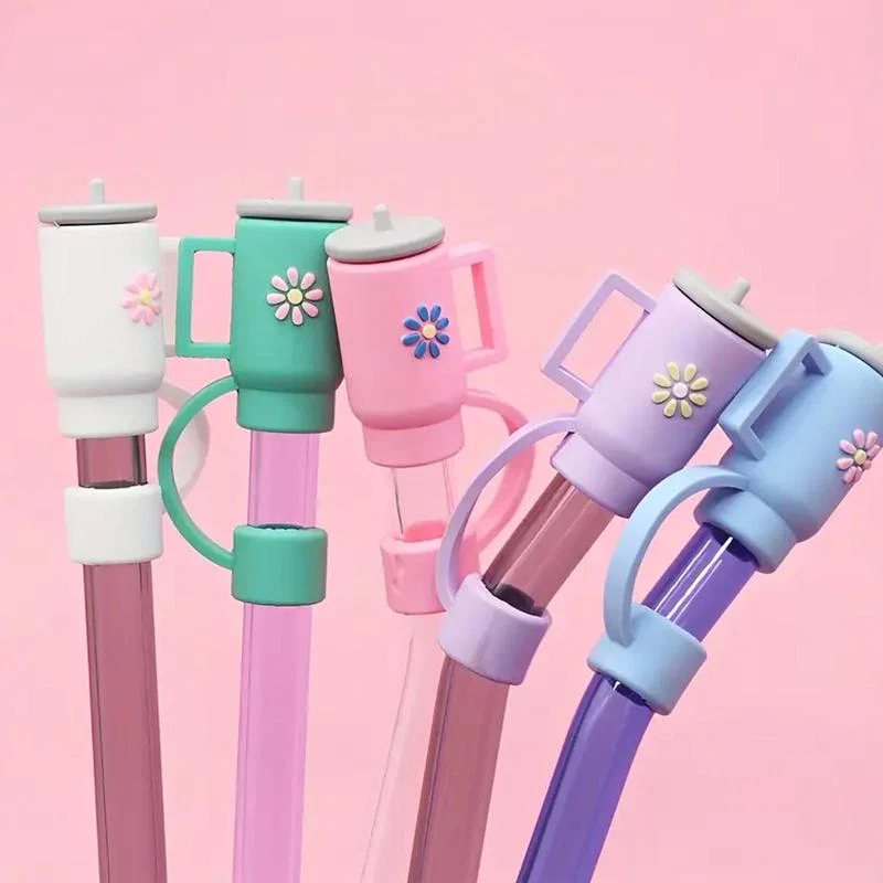 Random Color Cute Cup Design Drinking Straw Cover, 1/2/3/4/6Pcs Silicone Straw P