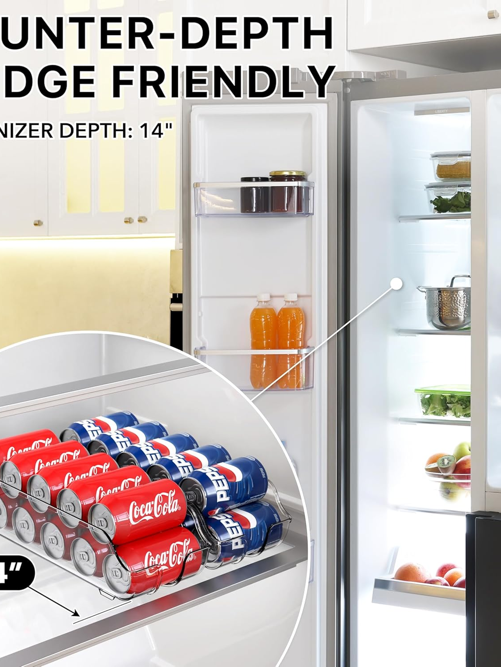 Soda Can Organizer for Pantry/Refrigerator, Clear, Set of 2
